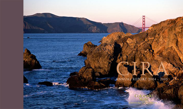 I designed and produced: Spring 2015, Spring 2014, Fall 2014, Spring 2013, Fall 2013, Spring 2012, Fall 2012, Summer 2011 and Fall 2010's Cover and logo Design: https://www.cira.colostate.edu/news-events/magazines/